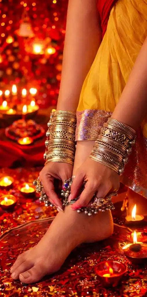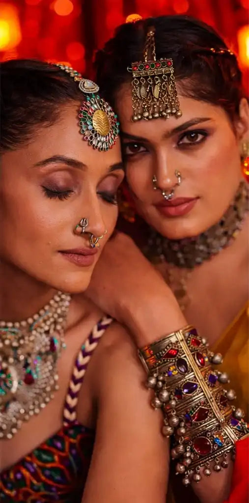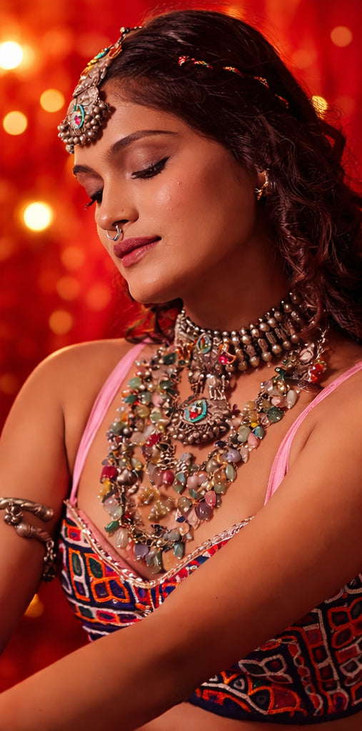 Inspired by age-old craftsmanship, our oxidised jewellery boasts intricate designs and textured finishes. These pieces can be elegantly paired with sarees, kurtas, or Indo-western outfits for a bold yet refined look.