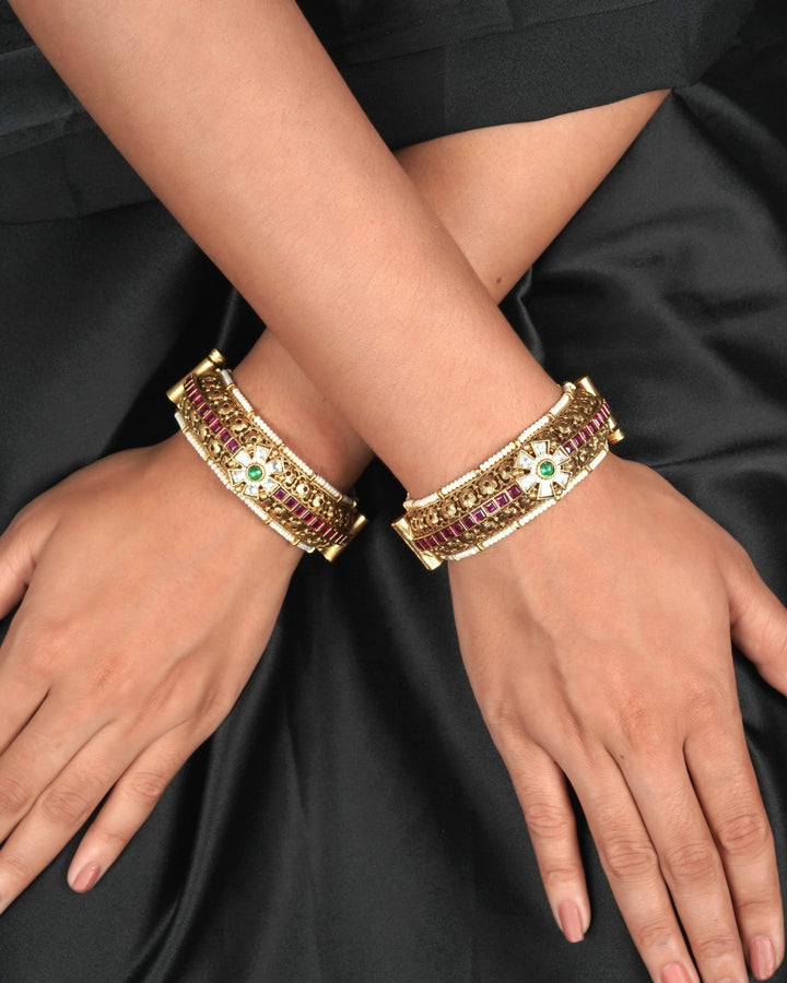 Antique Kundan Jewellery: "Adorn yourself with the opulence of a bygone era. Our exquisite Antique Kundan Jewelry collection showcases intricate designs, masterful craftsmanship, and the allure of vintage charm.Handcrafted with precision and passion, each piece features intricate kundan settings, adorned with precious stones and delicate enamel work. Perfect for special occasions or everyday sophistication, these heirloom-quality pieces will transport you to a world of timeless elegance.Handcrafted with antique kundan technique, Adorned with precious stones and enamel work, Intricate designs and masterful craftsmanship, Vintage charm and heirloom-quality, Perfect for special occasions or everyday wear, Store in a cool, dry place away from direct sunlight, Avoid exposure to harsh chemicals or cleaning products, Clean with soft cloth and mild soap solution.Experience the majesty of Antique Kundan Jewellery. Order now and own a piece of history!"