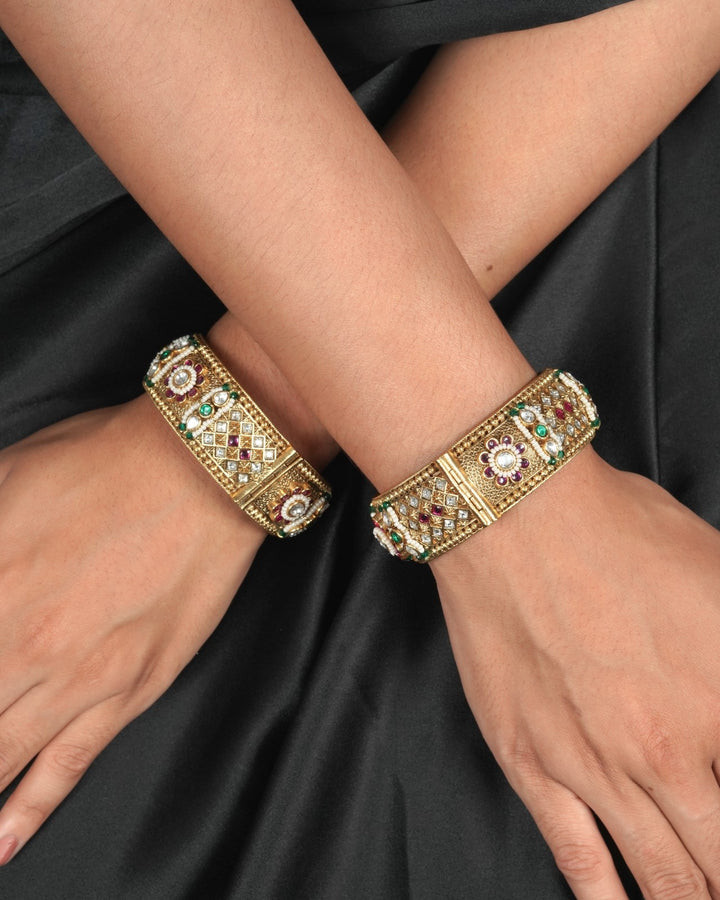 Antique Kundan Jewellery: "Adorn yourself with the opulence of a bygone era. Our exquisite Antique Kundan Jewelry collection showcases intricate designs, masterful craftsmanship, and the allure of vintage charm.Handcrafted with precision and passion, each piece features intricate kundan settings, adorned with precious stones and delicate enamel work. Perfect for special occasions or everyday sophistication, these heirloom-quality pieces will transport you to a world of timeless elegance.Handcrafted with antique kundan technique, Adorned with precious stones and enamel work, Intricate designs and masterful craftsmanship, Vintage charm and heirloom-quality, Perfect for special occasions or everyday wear, Store in a cool, dry place away from direct sunlight, Avoid exposure to harsh chemicals or cleaning products, Clean with soft cloth and mild soap solution.Experience the majesty of Antique Kundan Jewellery. Order now and own a piece of history!"