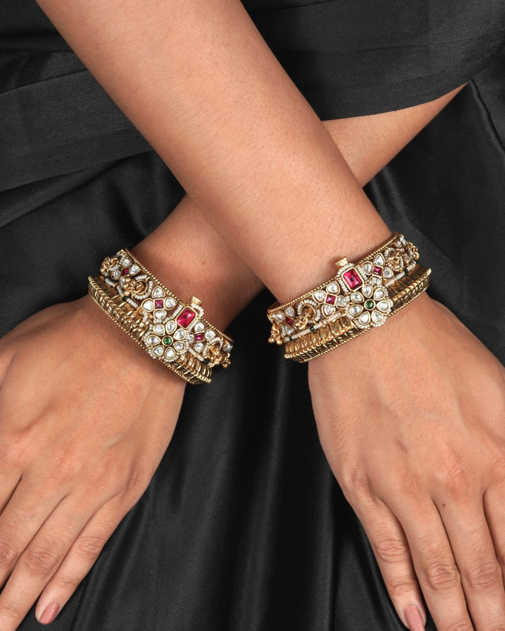 Antique Kundan Jewellery: "Adorn yourself with the opulence of a bygone era. Our exquisite Antique Kundan Jewelry collection showcases intricate designs, masterful craftsmanship, and the allure of vintage charm.Handcrafted with precision and passion, each piece features intricate kundan settings, adorned with precious stones and delicate enamel work. Perfect for special occasions or everyday sophistication, these heirloom-quality pieces will transport you to a world of timeless elegance.Handcrafted with antique kundan technique, Adorned with precious stones and enamel work, Intricate designs and masterful craftsmanship, Vintage charm and heirloom-quality, Perfect for special occasions or everyday wear, Store in a cool, dry place away from direct sunlight, Avoid exposure to harsh chemicals or cleaning products, Clean with soft cloth and mild soap solution.Experience the majesty of Antique Kundan Jewellery. Order now and own a piece of history!"