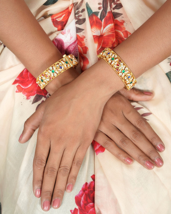 ✨ Jadau Pachi Kundan jewellery is a regal blend of traditional artistry and timeless elegance. Handcrafted with intricate meenakari work, uncut stones, and delicate settings, it reflects the grandeur of royal heritage. Known for its rich detailing and luxurious appeal, this jewellery style beautifully complements both festive and bridal looks, making every occasion truly majestic.