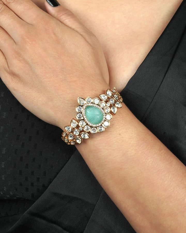 ✨ Polki–Moissanite Jewellery is a regal blend of timeless tradition and modern brilliance. Handcrafted with uncut natural polki stones and dazzling moissanite gems, this jewellery exudes royal charm with a sparkling touch. Perfect for weddings, festive occasions, and statement looks, it carries the richness of heritage while offering unmatched radiance and elegance. Store in a cool, dry place away from direct sunlight, Avoid exposure to harsh chemicals or cleaning products, Clean with soft cloth and mild soap solution.Own a piece of timeless elegance with our Polki-Moissanite Jewelry collection. Order now!"