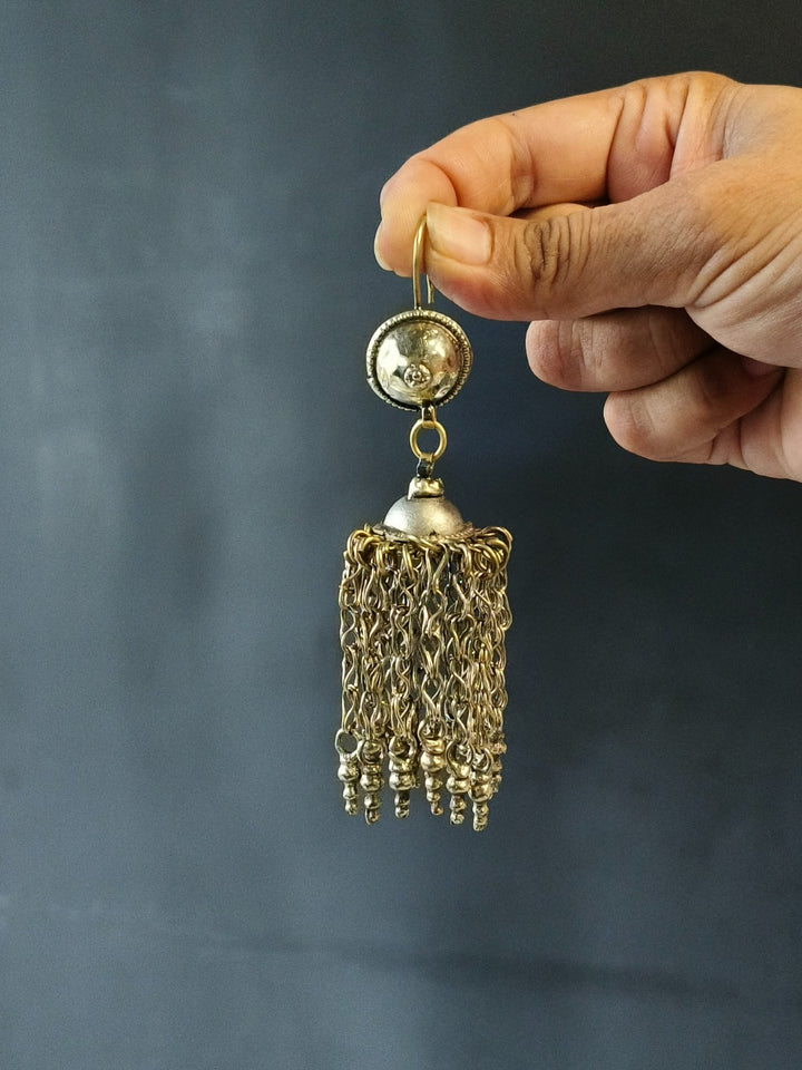 Afghani heritage jewellery is a vibrant expression of Afghanistan's rich cultural tapestry, characterized by handcrafted metalwork, semi-precious stones, coin embellishments, and colourful glass inlays. Drawing influences from Pashtun, Hazara, Turkman, and Kuchi tribal styles, these pieces are typically made from silver or mixed metals and often feature filigree patterns, chains, bells, and tassels. The jewellery is known for its ornate and statement-making aesthetic. Worn historically during weddings, festivals, and dances, Afghani jewellery is not only decorative but also a symbol of identity, status, and craftsmanship passed through generations.