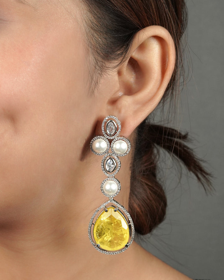 "Diamond jewellery is a timeless symbol of elegance and luxury, crafted with sparkling diamonds set in precious metals. Known for their brilliance, durability, and classic appeal, diamond pieces are cherished for both everyday wear and special occasions, making them a perfect blend of sophistication and everlasting beauty." Stone type: Cubic Zirconia (CZ) or Crystal, Plating: [silver, gold], Material: [ brass ], Store in a cool, dry place away from direct sunlight, Avoid exposure to harsh chemicals or cleaning products, Clean with soft cloth and mild soap solution.Experience the sparkle and shine of imitation diamond jewelry without the hefty price tag. Order now!"