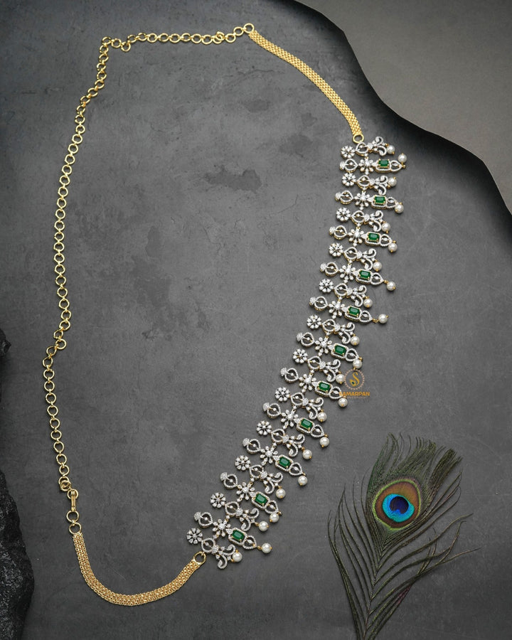 "Diamond jewellery is a timeless symbol of elegance and luxury, crafted with sparkling diamonds set in precious metals. Known for their brilliance, durability, and classic appeal, diamond pieces are cherished for both everyday wear and special occasions, making them a perfect blend of sophistication and everlasting beauty." Stone type: Cubic Zirconia (CZ) or Crystal, Plating: [silver, gold], Material: [ brass ], Store in a cool, dry place away from direct sunlight, Avoid exposure to harsh chemicals or cleaning products, Clean with soft cloth and mild soap solution.Experience the sparkle and shine of imitation diamond jewelry without the hefty price tag. Order now!"
