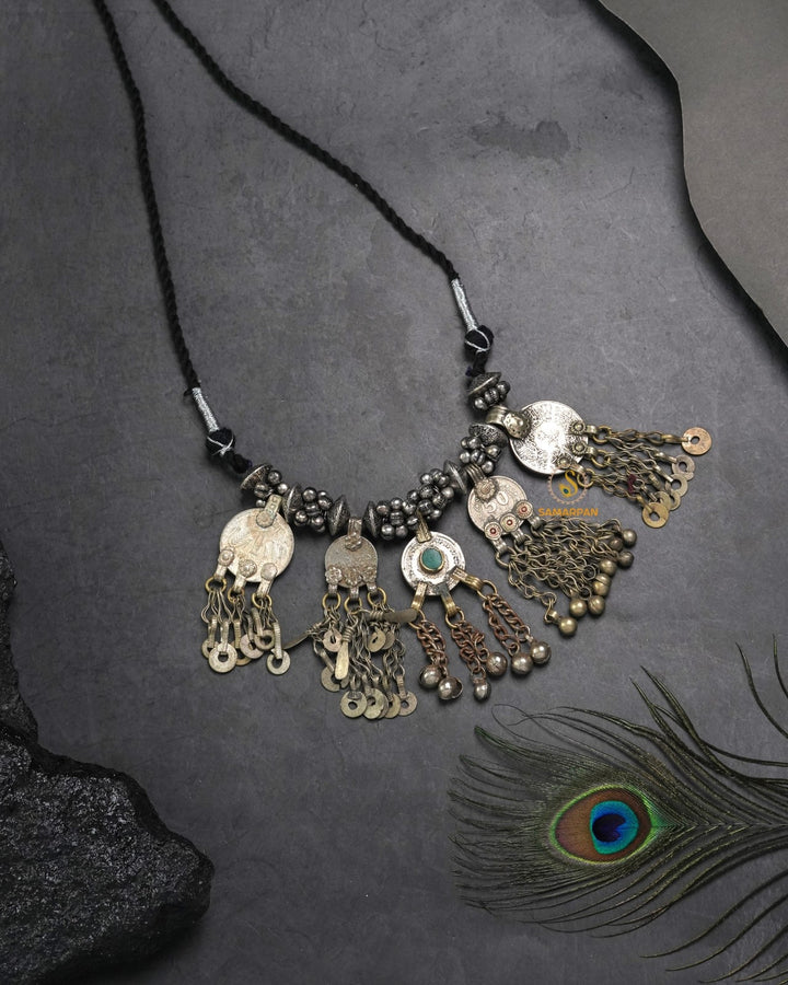 Afghani heritage jewellery is a vibrant expression of Afghanistan's rich cultural tapestry, characterized by handcrafted metalwork, semi-precious stones, coin embellishments, and colourful glass inlays. Drawing influences from Pashtun, Hazara, Turkman, and Kuchi tribal styles, these pieces are typically made from silver or mixed metals and often feature filigree patterns, chains, bells, and tassels. The jewellery is known for its ornate and statement-making aesthetic. Worn historically during weddings, festivals, and dances, Afghani jewellery is not only decorative but also a symbol of identity, status, and craftsmanship passed through generations.