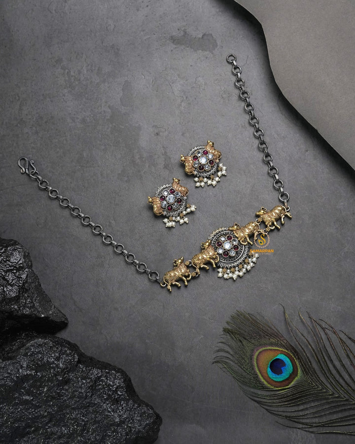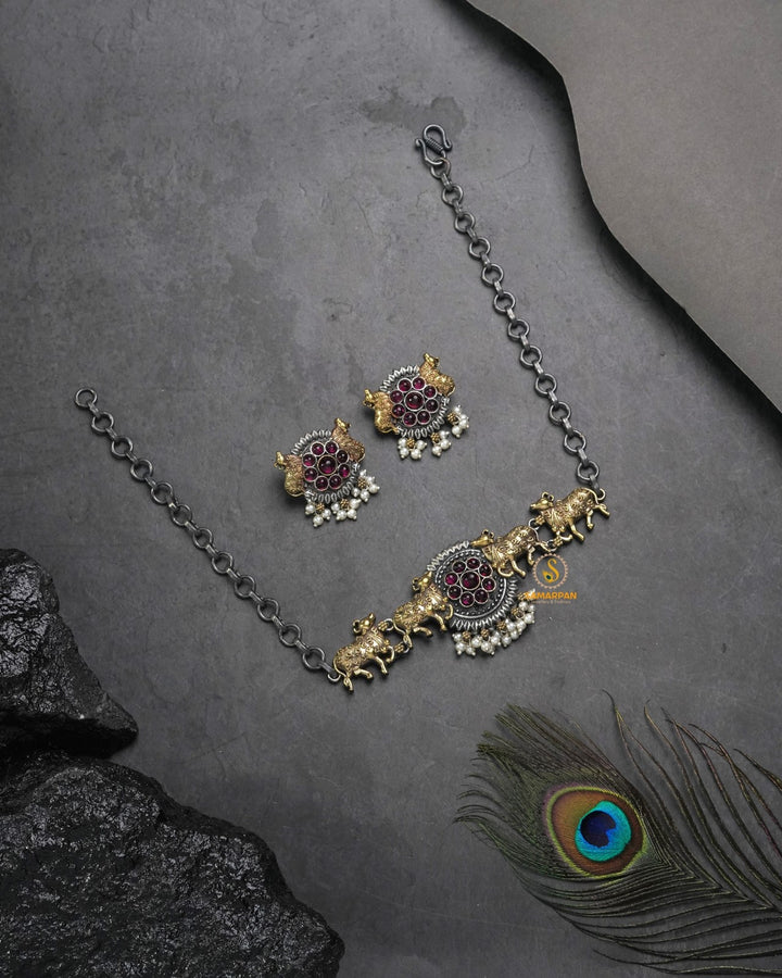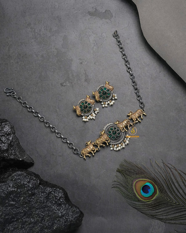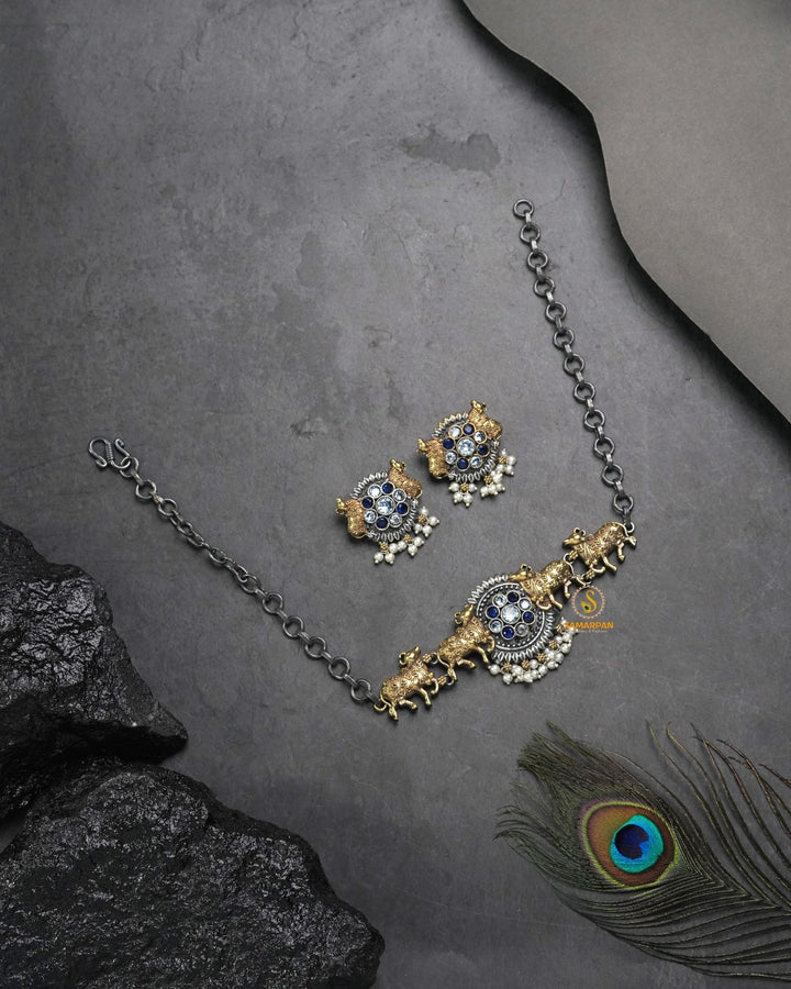 Tribal antique jewellery reflects the rich cultural heritage and raw artistry of indigenous communities. Crafted using traditional techniques, it often features bold designs, oxidised finishes, chunky patterns, and motifs inspired by nature, folklore, and tribal life. Each piece carries a rustic charm and vintage appeal, making it not just an ornament but a symbol of tradition, strength, and timeless beauty.