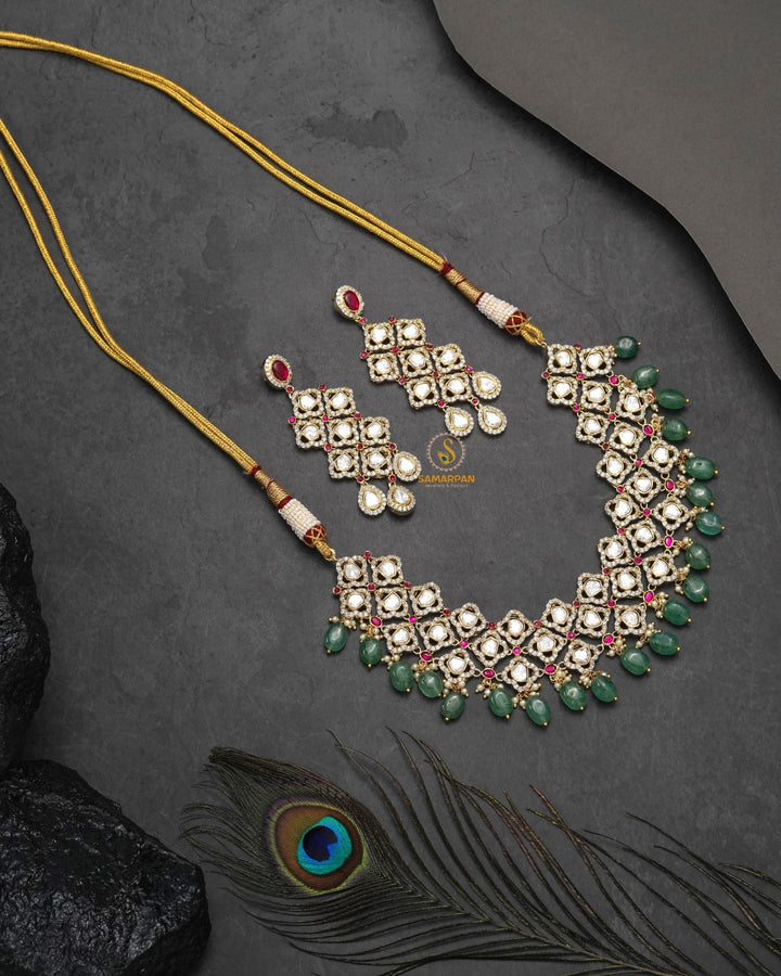✨ Polki–Moissanite Jewellery is a regal blend of timeless tradition and modern brilliance. Handcrafted with uncut natural polki stones and dazzling moissanite gems, this jewellery exudes royal charm with a sparkling touch. Perfect for weddings, festive occasions, and statement looks, it carries the richness of heritage while offering unmatched radiance and elegance. Store in a cool, dry place away from direct sunlight, Avoid exposure to harsh chemicals or cleaning products, Clean with soft cloth and mild soap solution.Own a piece of timeless elegance with our Polki-Moissanite Jewelry collection. Order now!"