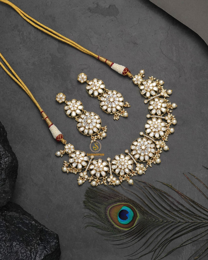 ✨ Polki–Moissanite Jewellery is a regal blend of timeless tradition and modern brilliance. Handcrafted with uncut natural polki stones and dazzling moissanite gems, this jewellery exudes royal charm with a sparkling touch. Perfect for weddings, festive occasions, and statement looks, it carries the richness of heritage while offering unmatched radiance and elegance. Store in a cool, dry place away from direct sunlight, Avoid exposure to harsh chemicals or cleaning products, Clean with soft cloth and mild soap solution.Own a piece of timeless elegance with our Polki-Moissanite Jewelry collection. Order now!"