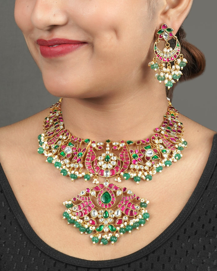✨ Jadau Pachi Kundan jewellery is a regal blend of traditional artistry and timeless elegance. Handcrafted with intricate meenakari work, uncut stones, and delicate settings, it reflects the grandeur of royal heritage. Known for its rich detailing and luxurious appeal, this jewellery style beautifully complements both festive and bridal looks, making every occasion truly majestic.