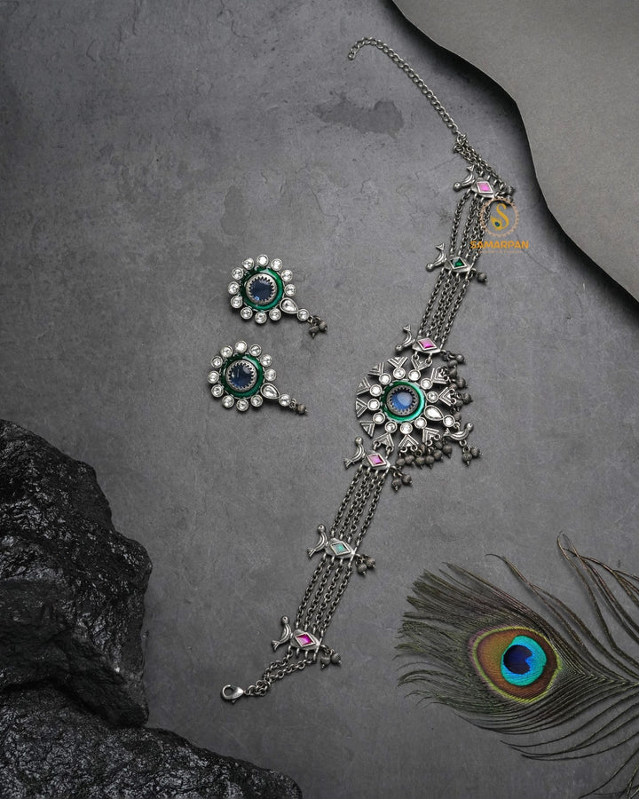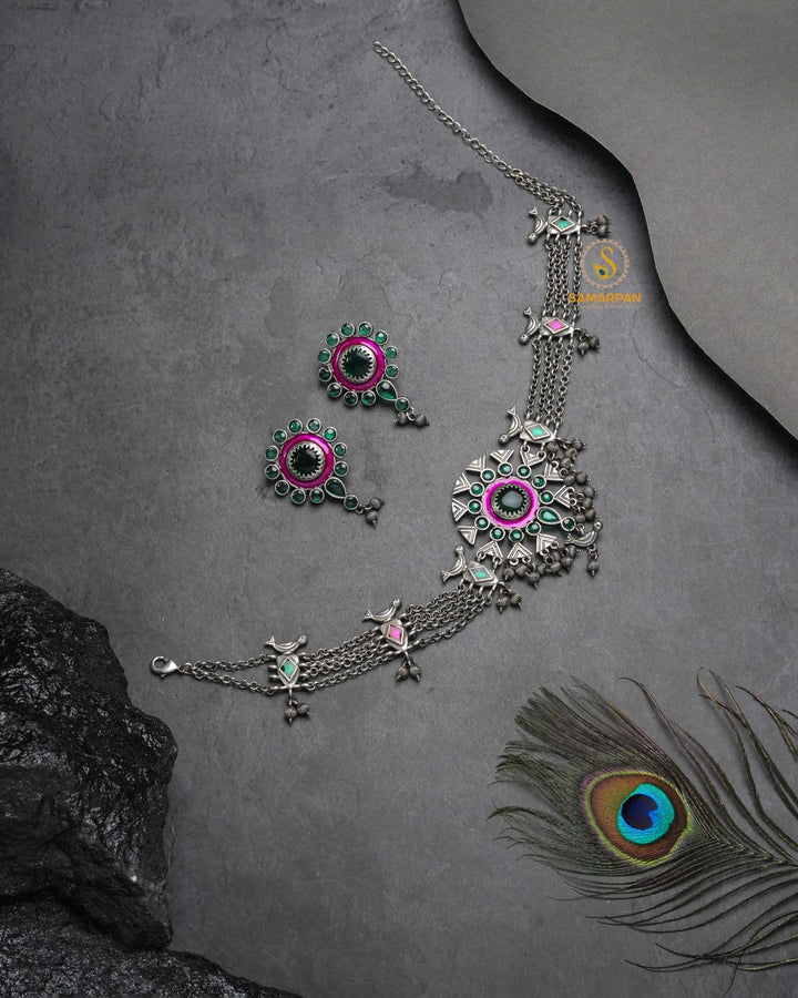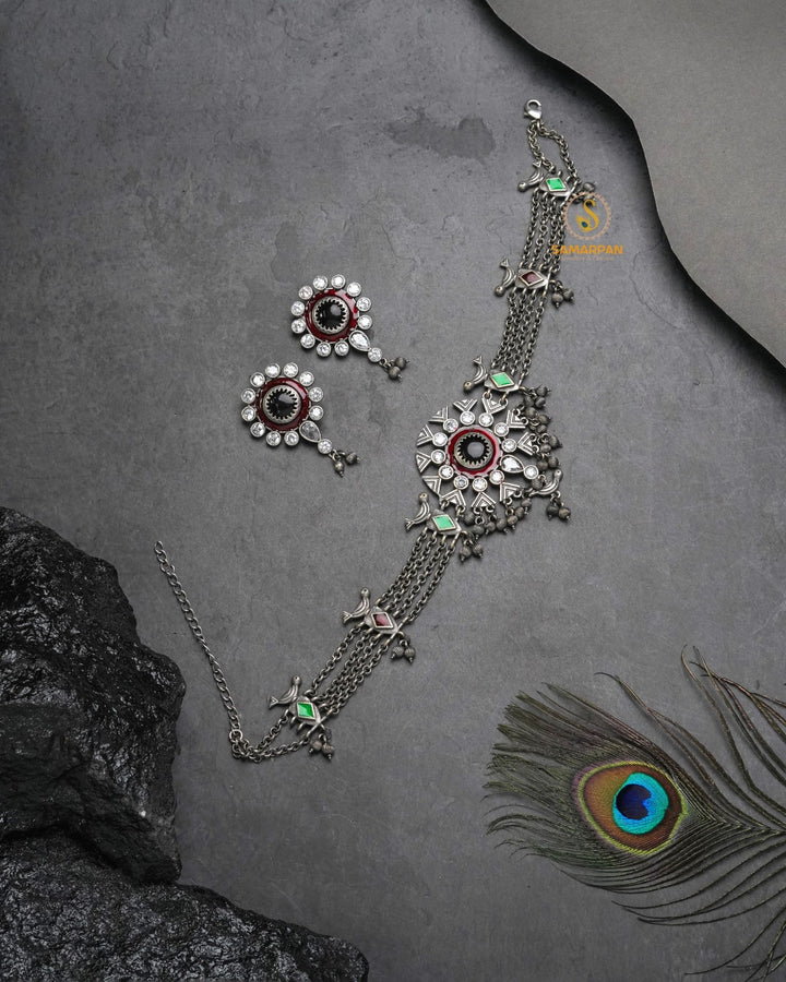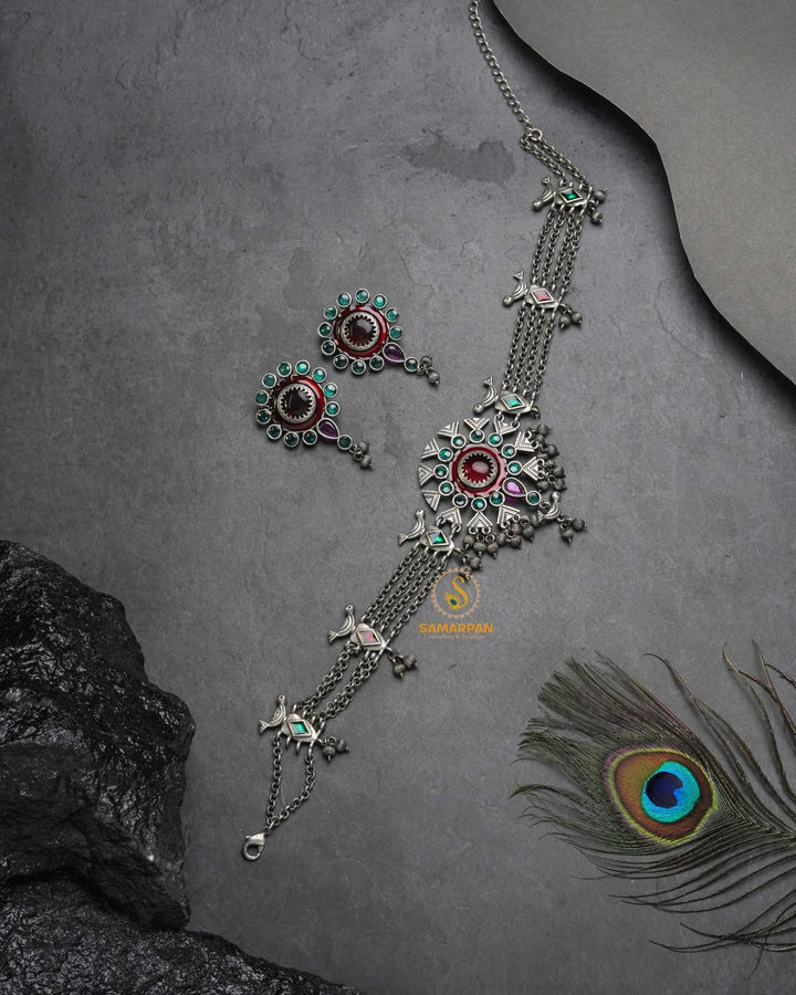Tribal antique jewellery reflects the rich cultural heritage and raw artistry of indigenous communities. Crafted using traditional techniques, it often features bold designs, oxidised finishes, chunky patterns, and motifs inspired by nature, folklore, and tribal life. Each piece carries a rustic charm and vintage appeal, making it not just an ornament but a symbol of tradition, strength, and timeless beauty.