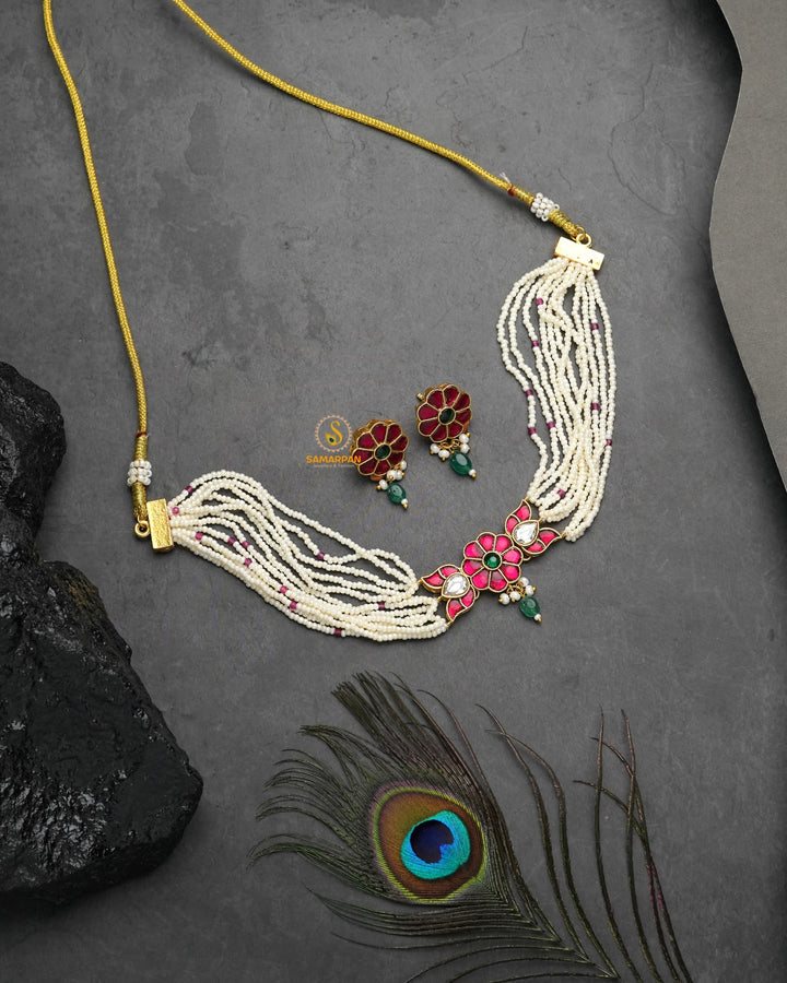 ✨ Jadau Pachi Kundan jewellery is a regal blend of traditional artistry and timeless elegance. Handcrafted with intricate meenakari work, uncut stones, and delicate settings, it reflects the grandeur of royal heritage. Known for its rich detailing and luxurious appeal, this jewellery style beautifully complements both festive and bridal looks, making every occasion truly majestic.
