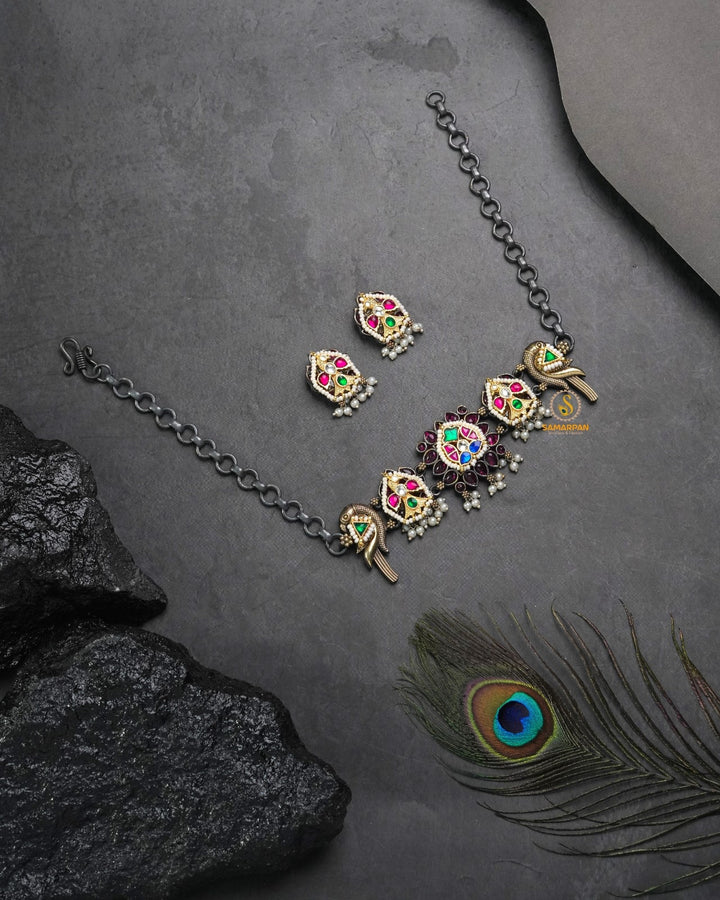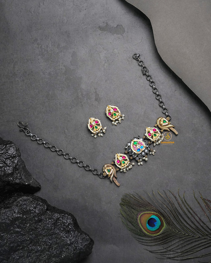 Tribal antique jewellery reflects the rich cultural heritage and raw artistry of indigenous communities. Crafted using traditional techniques, it often features bold designs, oxidised finishes, chunky patterns, and motifs inspired by nature, folklore, and tribal life. Each piece carries a rustic charm and vintage appeal, making it not just an ornament but a symbol of tradition, strength, and timeless beauty.