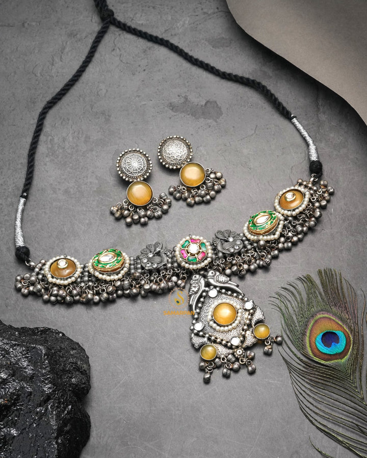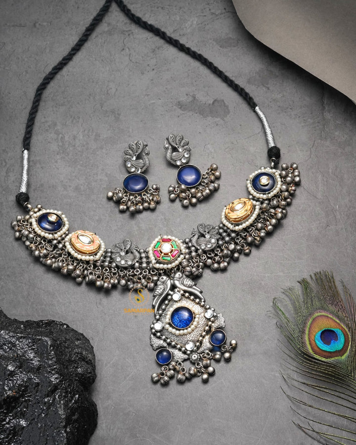 Tribal antique jewellery reflects the rich cultural heritage and raw artistry of indigenous communities. Crafted using traditional techniques, it often features bold designs, oxidised finishes, chunky patterns, and motifs inspired by nature, folklore, and tribal life. Each piece carries a rustic charm and vintage appeal, making it not just an ornament but a symbol of tradition, strength, and timeless beauty.