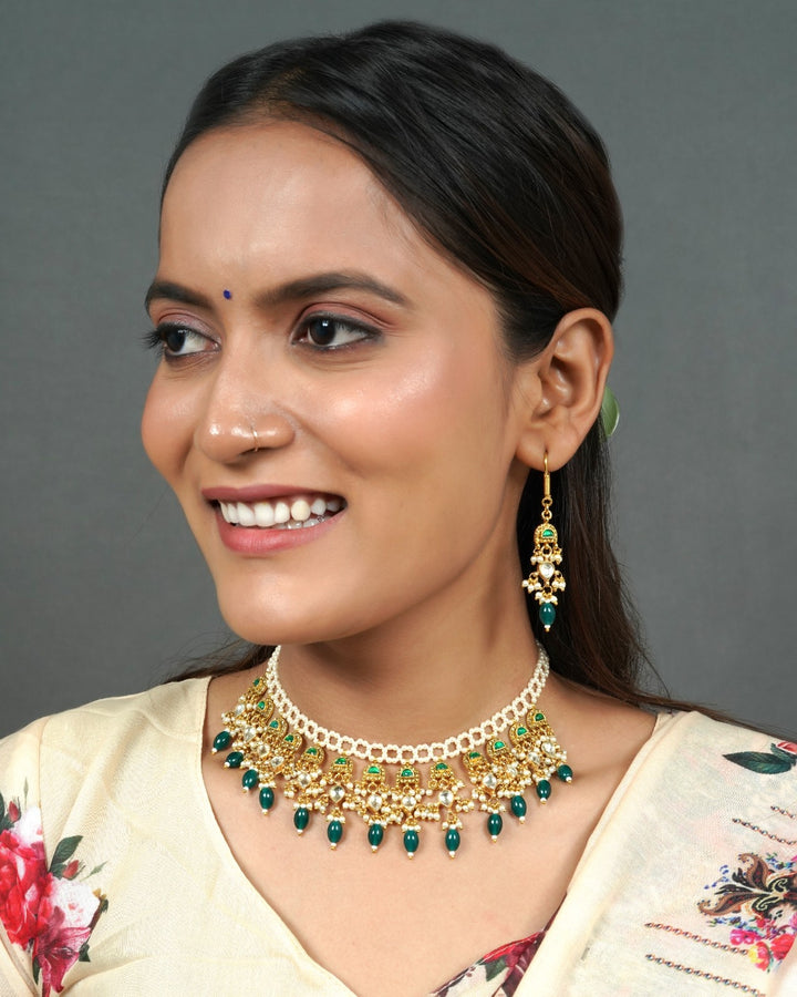 ✨ Jadau Pachi Kundan jewellery is a regal blend of traditional artistry and timeless elegance. Handcrafted with intricate meenakari work, uncut stones, and delicate settings, it reflects the grandeur of royal heritage. Known for its rich detailing and luxurious appeal, this jewellery style beautifully complements both festive and bridal looks, making every occasion truly majestic.