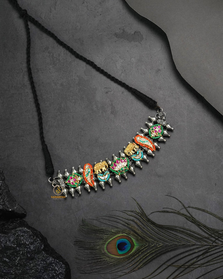 Tribal antique jewellery reflects the rich cultural heritage and raw artistry of indigenous communities. Crafted using traditional techniques, it often features bold designs, oxidised finishes, chunky patterns, and motifs inspired by nature, folklore, and tribal life. Each piece carries a rustic charm and vintage appeal, making it not just an ornament but a symbol of tradition, strength, and timeless beauty.