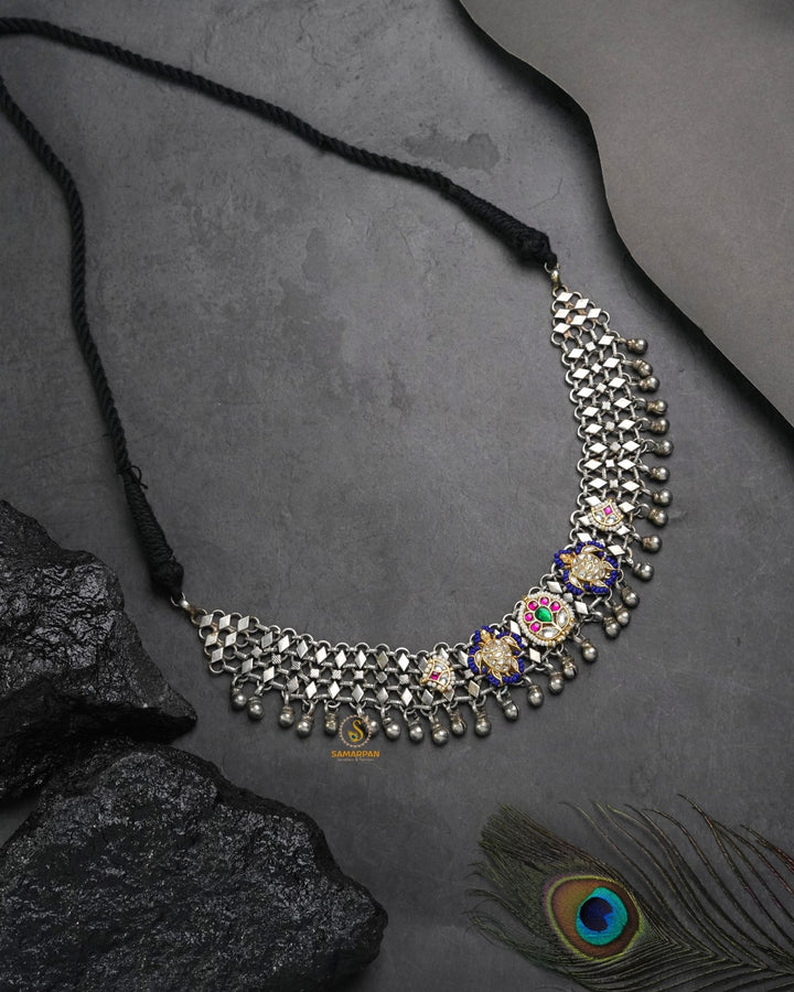Tribal antique jewellery reflects the rich cultural heritage and raw artistry of indigenous communities. Crafted using traditional techniques, it often features bold designs, oxidised finishes, chunky patterns, and motifs inspired by nature, folklore, and tribal life. Each piece carries a rustic charm and vintage appeal, making it not just an ornament but a symbol of tradition, strength, and timeless beauty.