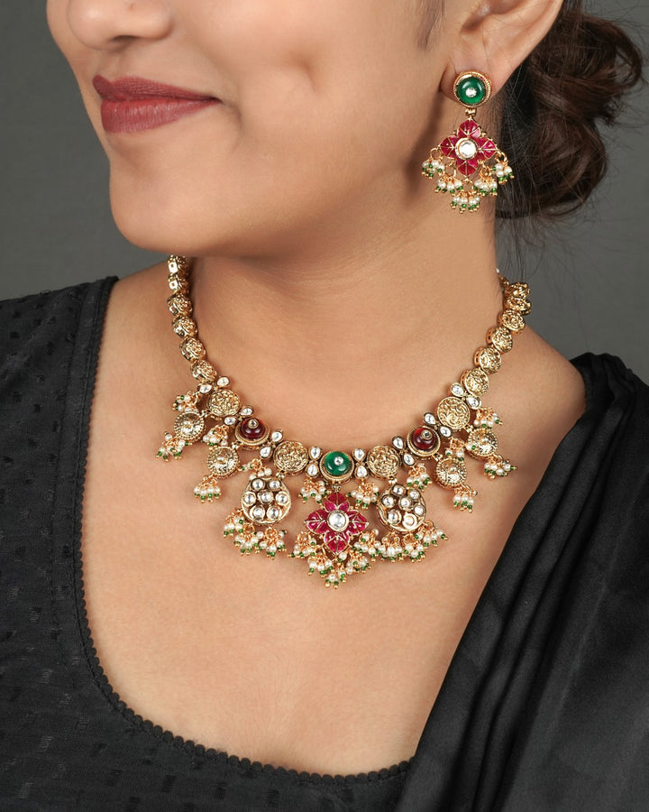 Antique Kundan Jewellery: "Adorn yourself with the opulence of a bygone era. Our exquisite Antique Kundan Jewelry collection showcases intricate designs, masterful craftsmanship, and the allure of vintage charm.Handcrafted with precision and passion, each piece features intricate kundan settings, adorned with precious stones and delicate enamel work. Perfect for special occasions or everyday sophistication, these heirloom-quality pieces will transport you to a world of timeless elegance.Handcrafted with antique kundan technique, Adorned with precious stones and enamel work, Intricate designs and masterful craftsmanship, Vintage charm and heirloom-quality, Perfect for special occasions or everyday wear, Store in a cool, dry place away from direct sunlight, Avoid exposure to harsh chemicals or cleaning products, Clean with soft cloth and mild soap solution.Experience the majesty of Antique Kundan Jewellery. Order now and own a piece of history!"