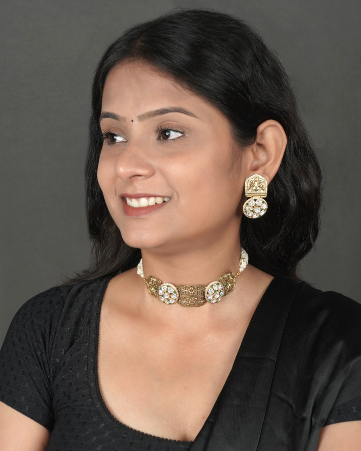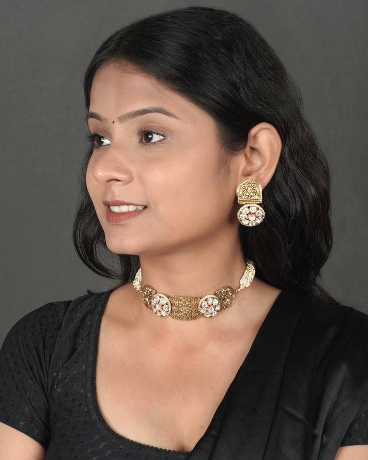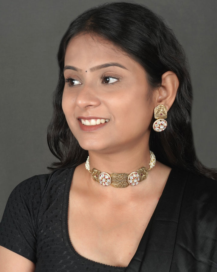 Antique Kundan Jewellery: "Adorn yourself with the opulence of a bygone era. Our exquisite Antique Kundan Jewelry collection showcases intricate designs, masterful craftsmanship, and the allure of vintage charm.Handcrafted with precision and passion, each piece features intricate kundan settings, adorned with precious stones and delicate enamel work. Perfect for special occasions or everyday sophistication, these heirloom-quality pieces will transport you to a world of timeless elegance.Handcrafted with antique kundan technique, Adorned with precious stones and enamel work, Intricate designs and masterful craftsmanship, Vintage charm and heirloom-quality, Perfect for special occasions or everyday wear, Store in a cool, dry place away from direct sunlight, Avoid exposure to harsh chemicals or cleaning products, Clean with soft cloth and mild soap solution.Experience the majesty of Antique Kundan Jewellery. Order now and own a piece of history!"
