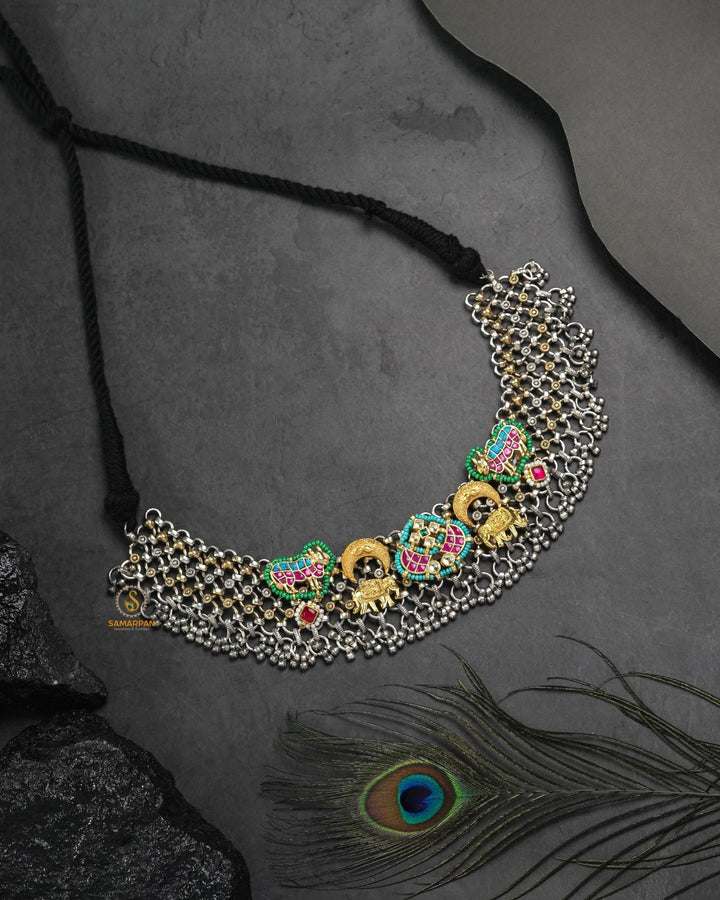 Tribal antique jewellery reflects the rich cultural heritage and raw artistry of indigenous communities. Crafted using traditional techniques, it often features bold designs, oxidised finishes, chunky patterns, and motifs inspired by nature, folklore, and tribal life. Each piece carries a rustic charm and vintage appeal, making it not just an ornament but a symbol of tradition, strength, and timeless beauty.