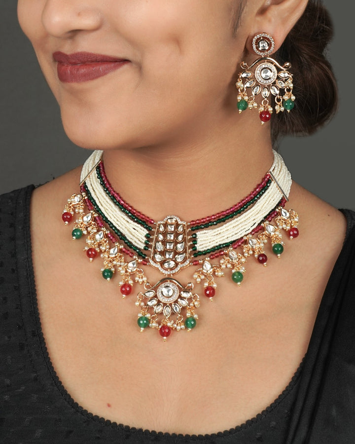 Antique Kundan Jewellery: "Adorn yourself with the opulence of a bygone era. Our exquisite Antique Kundan Jewelry collection showcases intricate designs, masterful craftsmanship, and the allure of vintage charm.Handcrafted with precision and passion, each piece features intricate kundan settings, adorned with precious stones and delicate enamel work. Perfect for special occasions or everyday sophistication, these heirloom-quality pieces will transport you to a world of timeless elegance.Handcrafted with antique kundan technique, Adorned with precious stones and enamel work, Intricate designs and masterful craftsmanship, Vintage charm and heirloom-quality, Perfect for special occasions or everyday wear, Store in a cool, dry place away from direct sunlight, Avoid exposure to harsh chemicals or cleaning products, Clean with soft cloth and mild soap solution.Experience the majesty of Antique Kundan Jewellery. Order now and own a piece of history!"