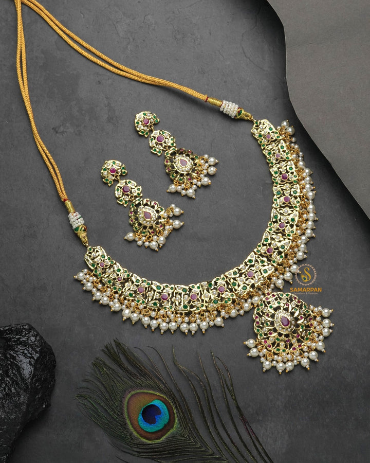 The Amritsari Jadau Jewellery Collection celebrates the regal charm and intricate craftsmanship of traditional Punjabi artistry. Each piece is a symbol of opulence, handcrafted with precision to reflect royal heritage and timeless elegance. This collection lets you embrace the splendour of tradition while adding a touch of majestic grace to every occasion.