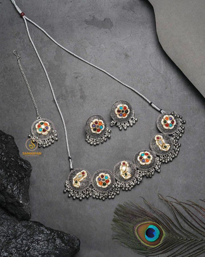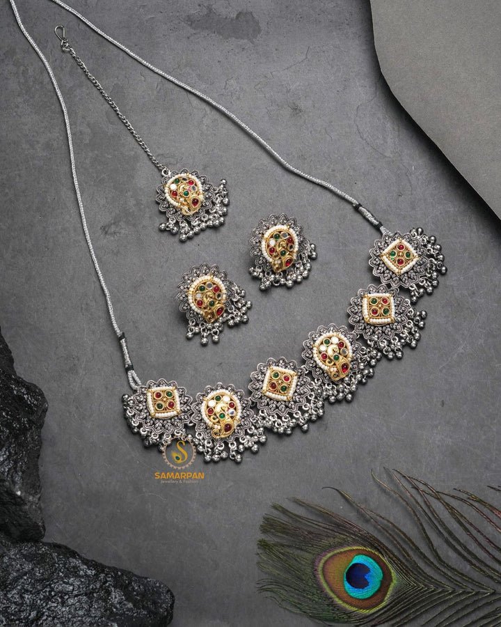 Tribal antique jewellery reflects the rich cultural heritage and raw artistry of indigenous communities. Crafted using traditional techniques, it often features bold designs, oxidised finishes, chunky patterns, and motifs inspired by nature, folklore, and tribal life. Each piece carries a rustic charm and vintage appeal, making it not just an ornament but a symbol of tradition, strength, and timeless beauty.
