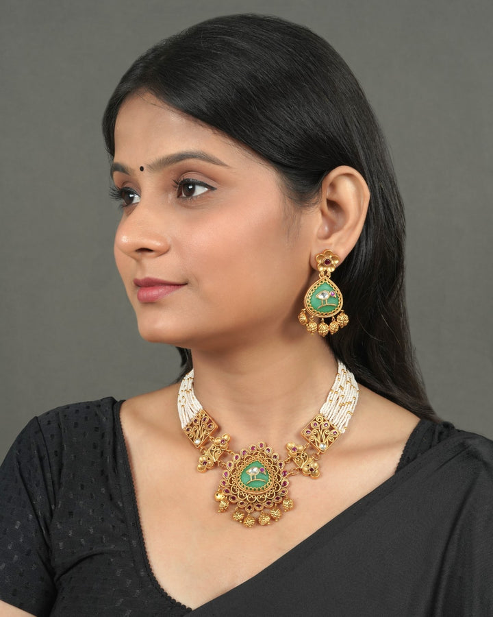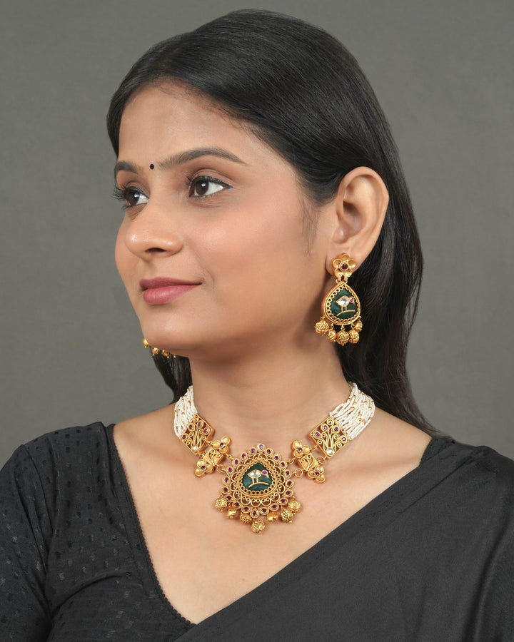 Golden heritage jewellery is a timeless expression of tradition and artistry, crafted with intricate detailing and classic designs that reflect cultural richness. These pieces often feature traditional motifs, fine craftsmanship, and luxurious gold work, symbolizing elegance, prosperity, and heritage passed down through generations. Perfect for festive occasions and special celebrations, golden heritage jewellery beautifully blends royal charm with everlasting grace. ✨
