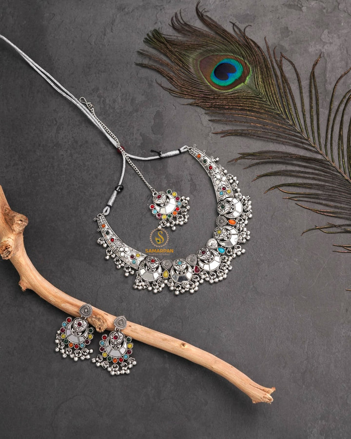 Tribal antique jewellery reflects the rich cultural heritage and raw artistry of indigenous communities. Crafted using traditional techniques, it often features bold designs, oxidised finishes, chunky patterns, and motifs inspired by nature, folklore, and tribal life. Each piece carries a rustic charm and vintage appeal, making it not just an ornament but a symbol of tradition, strength, and timeless beauty.