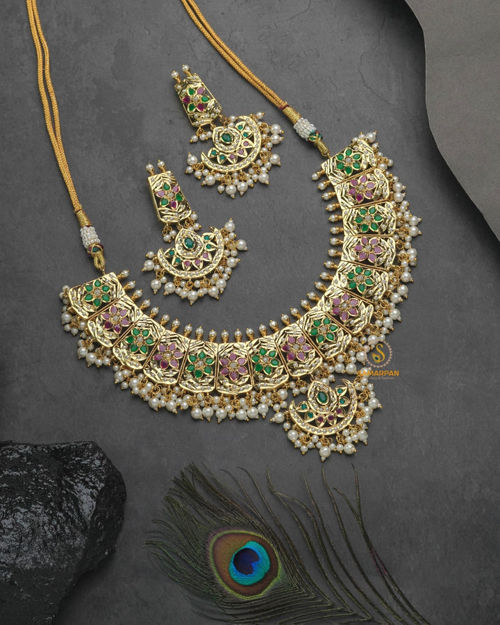 The Amritsari Jadau Jewellery Collection celebrates the regal charm and intricate craftsmanship of traditional Punjabi artistry. Each piece is a symbol of opulence, handcrafted with precision to reflect royal heritage and timeless elegance. This collection lets you embrace the splendour of tradition while adding a touch of majestic grace to every occasion.