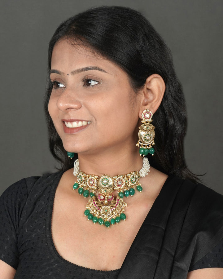 ✨ Jadau Pachi Kundan jewellery is a regal blend of traditional artistry and timeless elegance. Handcrafted with intricate meenakari work, uncut stones, and delicate settings, it reflects the grandeur of royal heritage. Known for its rich detailing and luxurious appeal, this jewellery style beautifully complements both festive and bridal looks, making every occasion truly majestic.