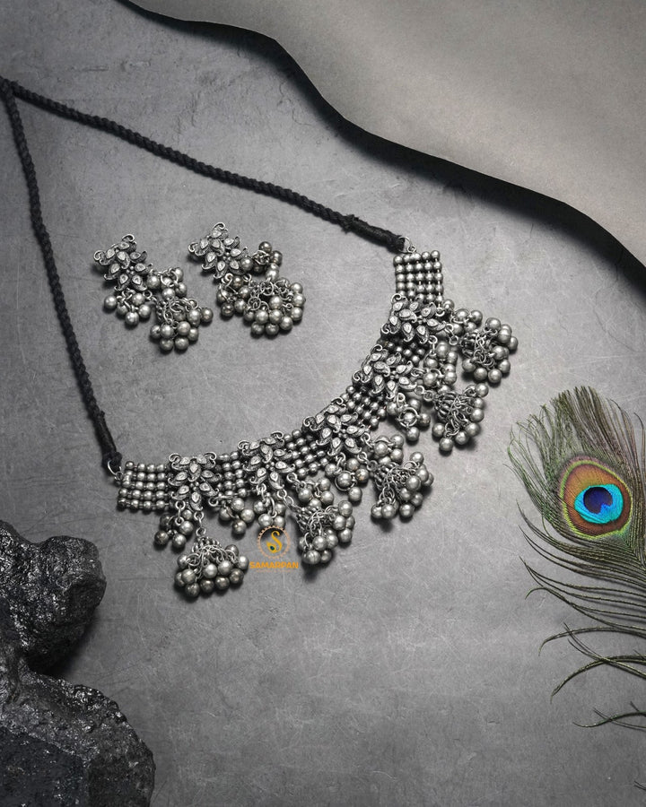 Tribal antique jewellery reflects the rich cultural heritage and raw artistry of indigenous communities. Crafted using traditional techniques, it often features bold designs, oxidised finishes, chunky patterns, and motifs inspired by nature, folklore, and tribal life. Each piece carries a rustic charm and vintage appeal, making it not just an ornament but a symbol of tradition, strength, and timeless beauty.
