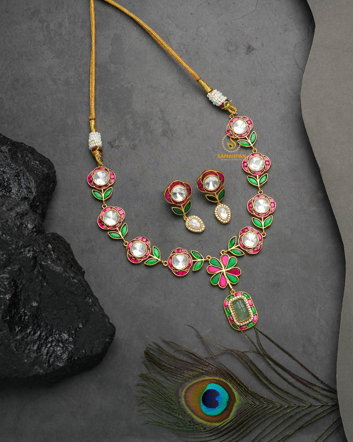 ✨ Jadau Pachi Kundan jewellery is a regal blend of traditional artistry and timeless elegance. Handcrafted with intricate meenakari work, uncut stones, and delicate settings, it reflects the grandeur of royal heritage. Known for its rich detailing and luxurious appeal, this jewellery style beautifully complements both festive and bridal looks, making every occasion truly majestic.