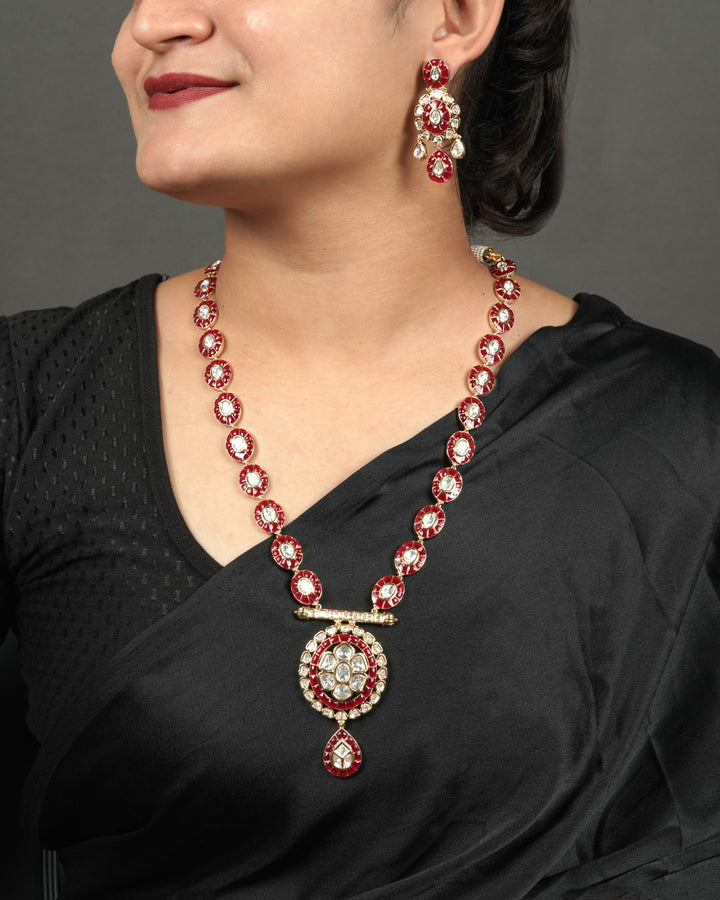 ✨ Polki–Moissanite Jewellery is a regal blend of timeless tradition and modern brilliance. Handcrafted with uncut natural polki stones and dazzling moissanite gems, this jewellery exudes royal charm with a sparkling touch. Perfect for weddings, festive occasions, and statement looks, it carries the richness of heritage while offering unmatched radiance and elegance. Store in a cool, dry place away from direct sunlight, Avoid exposure to harsh chemicals or cleaning products, Clean with soft cloth and mild soap solution.Own a piece of timeless elegance with our Polki-Moissanite Jewelry collection. Order now!"