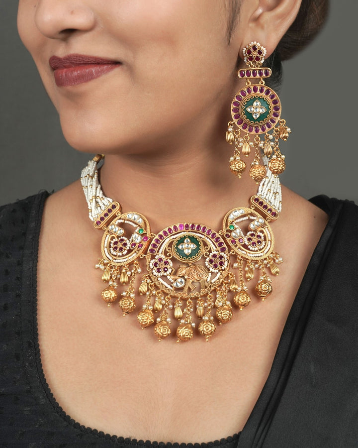 Golden heritage jewellery is a timeless expression of tradition and artistry, crafted with intricate detailing and classic designs that reflect cultural richness. These pieces often feature traditional motifs, fine craftsmanship, and luxurious gold work, symbolizing elegance, prosperity, and heritage passed down through generations. Perfect for festive occasions and special celebrations, golden heritage jewellery beautifully blends royal charm with everlasting grace. ✨