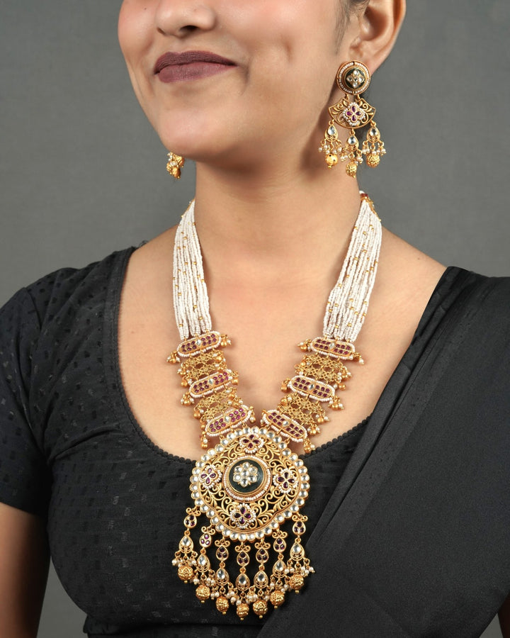 Golden heritage jewellery is a timeless expression of tradition and artistry, crafted with intricate detailing and classic designs that reflect cultural richness. These pieces often feature traditional motifs, fine craftsmanship, and luxurious gold work, symbolizing elegance, prosperity, and heritage passed down through generations. Perfect for festive occasions and special celebrations, golden heritage jewellery beautifully blends royal charm with everlasting grace. ✨