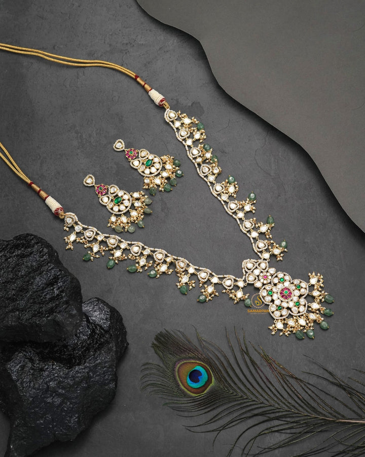 ✨ Polki–Moissanite Jewellery is a regal blend of timeless tradition and modern brilliance. Handcrafted with uncut natural polki stones and dazzling moissanite gems, this jewellery exudes royal charm with a sparkling touch. Perfect for weddings, festive occasions, and statement looks, it carries the richness of heritage while offering unmatched radiance and elegance. Store in a cool, dry place away from direct sunlight, Avoid exposure to harsh chemicals or cleaning products, Clean with soft cloth and mild soap solution.Own a piece of timeless elegance with our Polki-Moissanite Jewelry collection. Order now!"