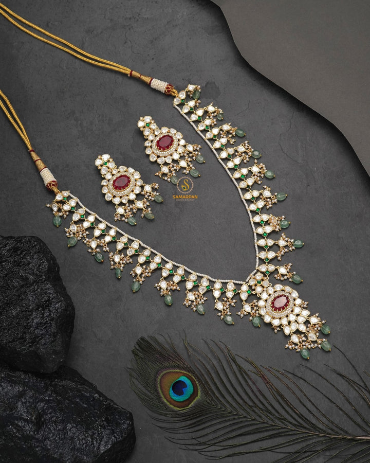 ✨ Polki–Moissanite Jewellery is a regal blend of timeless tradition and modern brilliance. Handcrafted with uncut natural polki stones and dazzling moissanite gems, this jewellery exudes royal charm with a sparkling touch. Perfect for weddings, festive occasions, and statement looks, it carries the richness of heritage while offering unmatched radiance and elegance. Store in a cool, dry place away from direct sunlight, Avoid exposure to harsh chemicals or cleaning products, Clean with soft cloth and mild soap solution.Own a piece of timeless elegance with our Polki-Moissanite Jewelry collection. Order now!"