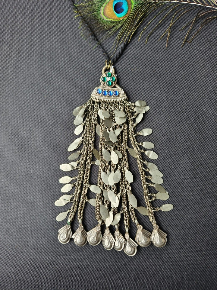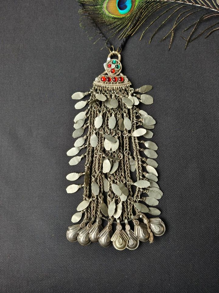 Afghani heritage jewellery is a vibrant expression of Afghanistan's rich cultural tapestry, characterized by handcrafted metalwork, semi-precious stones, coin embellishments, and colourful glass inlays. Drawing influences from Pashtun, Hazara, Turkman, and Kuchi tribal styles, these pieces are typically made from silver or mixed metals and often feature filigree patterns, chains, bells, and tassels. The jewellery is known for its ornate and statement-making aesthetic. Worn historically during weddings, festivals, and dances, Afghani jewellery is not only decorative but also a symbol of identity, status, and craftsmanship passed through generations.
