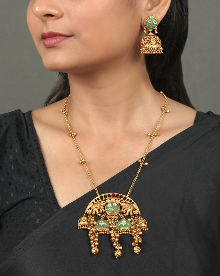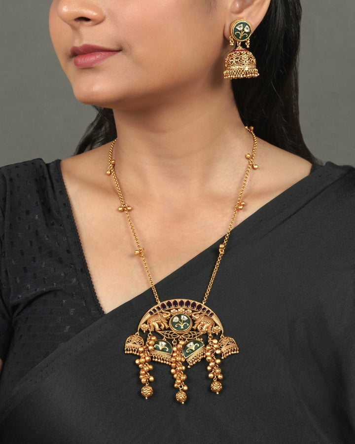 Golden heritage jewellery is a timeless expression of tradition and artistry, crafted with intricate detailing and classic designs that reflect cultural richness. These pieces often feature traditional motifs, fine craftsmanship, and luxurious gold work, symbolizing elegance, prosperity, and heritage passed down through generations. Perfect for festive occasions and special celebrations, golden heritage jewellery beautifully blends royal charm with everlasting grace. ✨