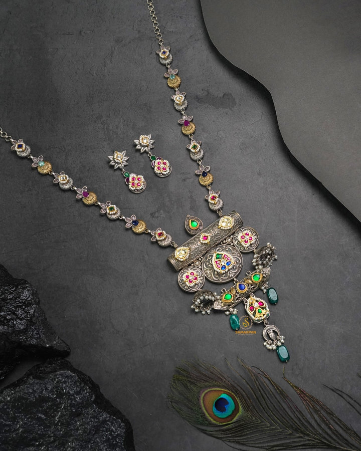 Tribal antique jewellery reflects the rich cultural heritage and raw artistry of indigenous communities. Crafted using traditional techniques, it often features bold designs, oxidised finishes, chunky patterns, and motifs inspired by nature, folklore, and tribal life. Each piece carries a rustic charm and vintage appeal, making it not just an ornament but a symbol of tradition, strength, and timeless beauty.