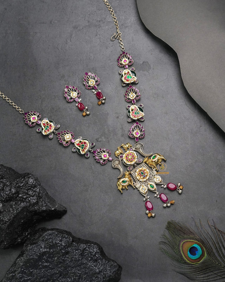 Tribal antique jewellery reflects the rich cultural heritage and raw artistry of indigenous communities. Crafted using traditional techniques, it often features bold designs, oxidised finishes, chunky patterns, and motifs inspired by nature, folklore, and tribal life. Each piece carries a rustic charm and vintage appeal, making it not just an ornament but a symbol of tradition, strength, and timeless beauty.