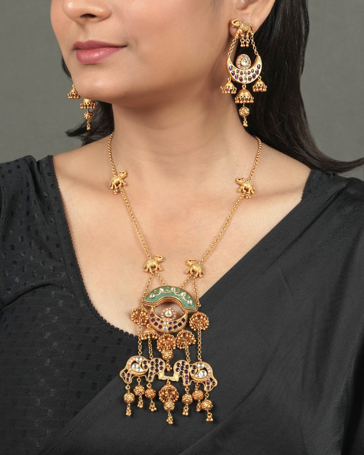 Golden heritage jewellery is a timeless expression of tradition and artistry, crafted with intricate detailing and classic designs that reflect cultural richness. These pieces often feature traditional motifs, fine craftsmanship, and luxurious gold work, symbolizing elegance, prosperity, and heritage passed down through generations. Perfect for festive occasions and special celebrations, golden heritage jewellery beautifully blends royal charm with everlasting grace. ✨