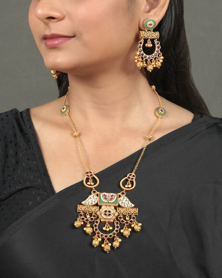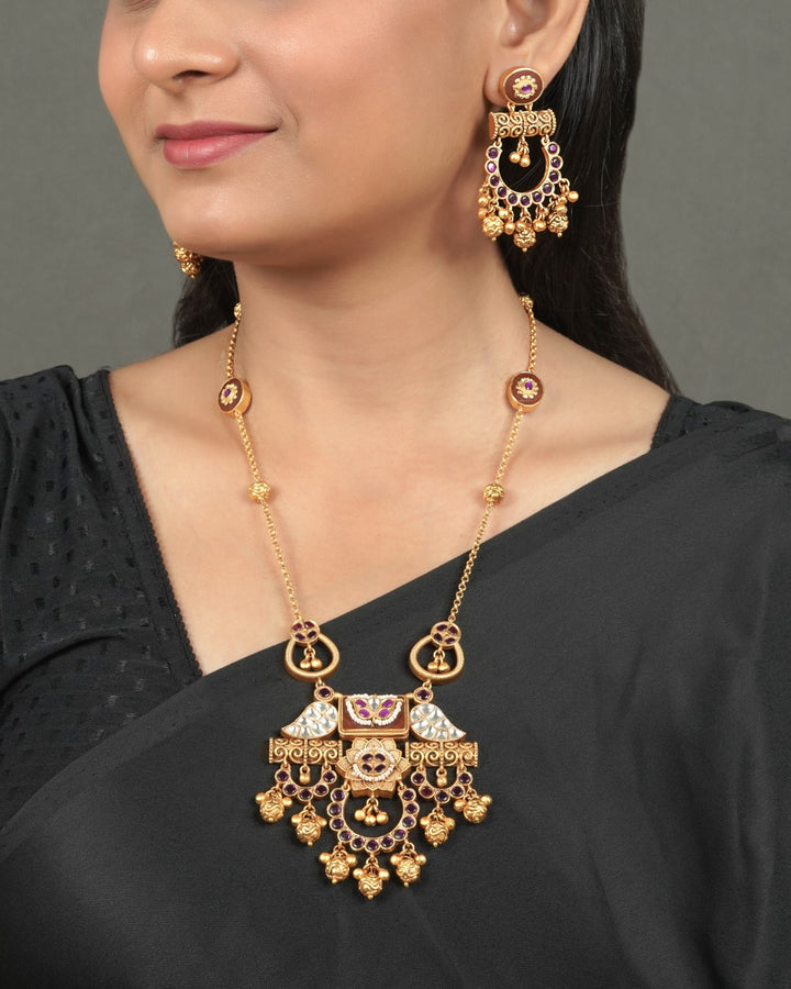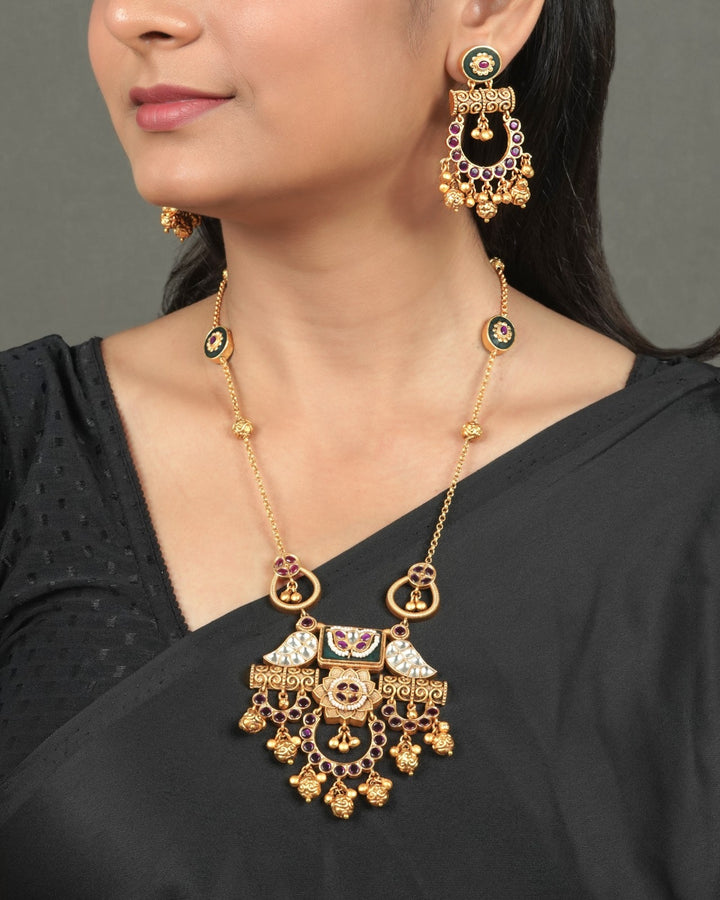 Golden heritage jewellery is a timeless expression of tradition and artistry, crafted with intricate detailing and classic designs that reflect cultural richness. These pieces often feature traditional motifs, fine craftsmanship, and luxurious gold work, symbolizing elegance, prosperity, and heritage passed down through generations. Perfect for festive occasions and special celebrations, golden heritage jewellery beautifully blends royal charm with everlasting grace. ✨