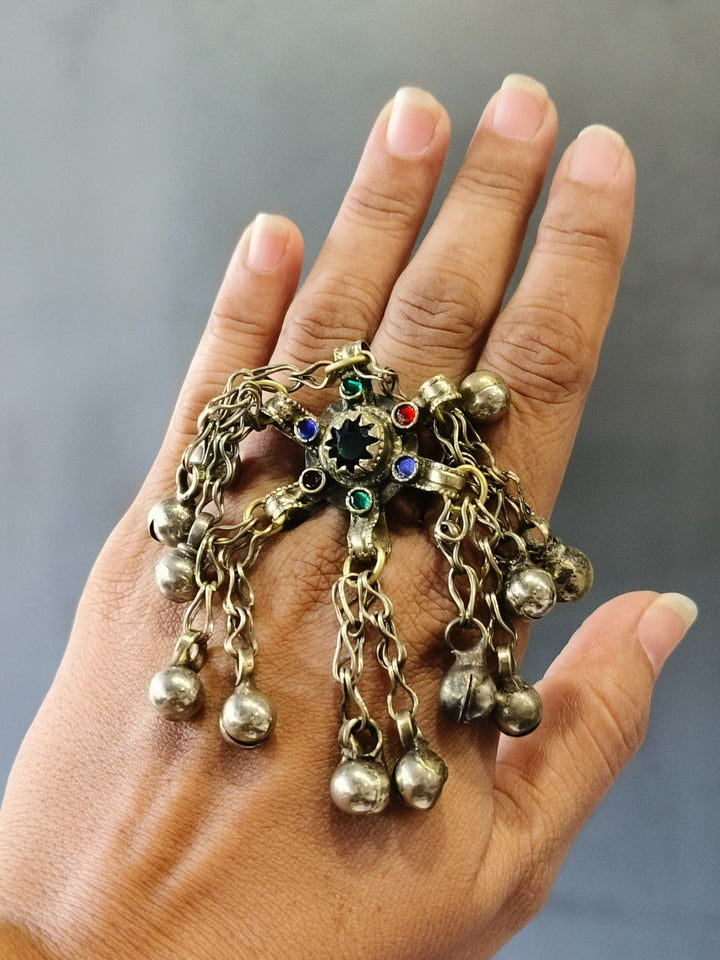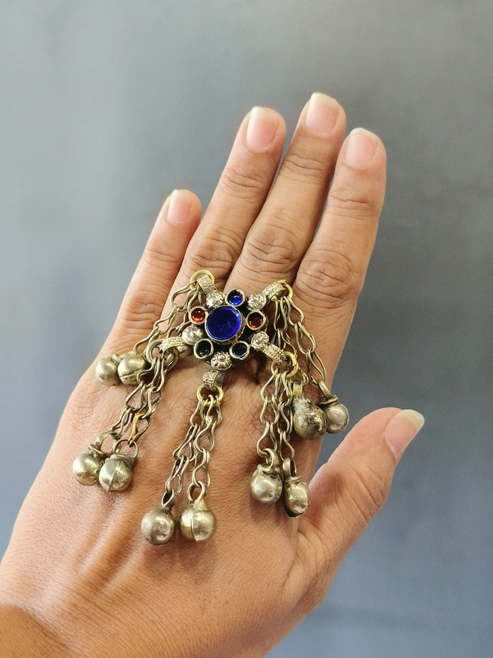 Afghani heritage jewellery is a vibrant expression of Afghanistan's rich cultural tapestry, characterized by handcrafted metalwork, semi-precious stones, coin embellishments, and colourful glass inlays. Drawing influences from Pashtun, Hazara, Turkman, and Kuchi tribal styles, these pieces are typically made from silver or mixed metals and often feature filigree patterns, chains, bells, and tassels. The jewellery is known for its ornate and statement-making aesthetic. Worn historically during weddings, festivals, and dances, Afghani jewellery is not only decorative but also a symbol of identity, status, and craftsmanship passed through generations.