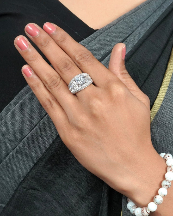 "Diamond jewellery is a timeless symbol of elegance and luxury, crafted with sparkling diamonds set in precious metals. Known for their brilliance, durability, and classic appeal, diamond pieces are cherished for both everyday wear and special occasions, making them a perfect blend of sophistication and everlasting beauty." Stone type: Cubic Zirconia (CZ) or Crystal, Plating: [silver, gold], Material: [ brass ], Store in a cool, dry place away from direct sunlight, Avoid exposure to harsh chemicals or cleaning products, Clean with soft cloth and mild soap solution.Experience the sparkle and shine of imitation diamond jewelry without the hefty price tag. Order now!"