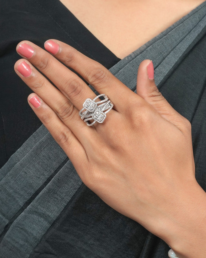 "Diamond jewellery is a timeless symbol of elegance and luxury, crafted with sparkling diamonds set in precious metals. Known for their brilliance, durability, and classic appeal, diamond pieces are cherished for both everyday wear and special occasions, making them a perfect blend of sophistication and everlasting beauty." Stone type: Cubic Zirconia (CZ) or Crystal, Plating: [silver, gold], Material: [ brass ], Store in a cool, dry place away from direct sunlight, Avoid exposure to harsh chemicals or cleaning products, Clean with soft cloth and mild soap solution.Experience the sparkle and shine of imitation diamond jewelry without the hefty price tag. Order now!"