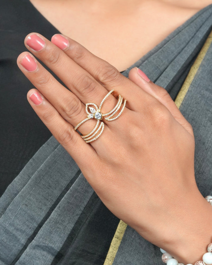 "Diamond jewellery is a timeless symbol of elegance and luxury, crafted with sparkling diamonds set in precious metals. Known for their brilliance, durability, and classic appeal, diamond pieces are cherished for both everyday wear and special occasions, making them a perfect blend of sophistication and everlasting beauty." Stone type: Cubic Zirconia (CZ) or Crystal, Plating: [silver, gold], Material: [ brass ], Store in a cool, dry place away from direct sunlight, Avoid exposure to harsh chemicals or cleaning products, Clean with soft cloth and mild soap solution.Experience the sparkle and shine of imitation diamond jewelry without the hefty price tag. Order now!"