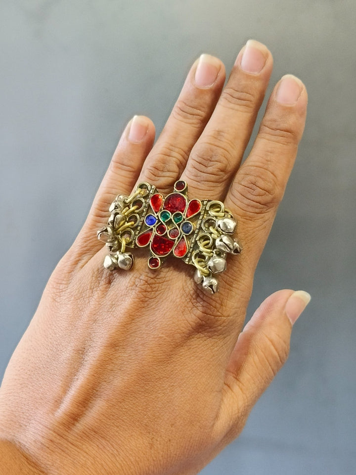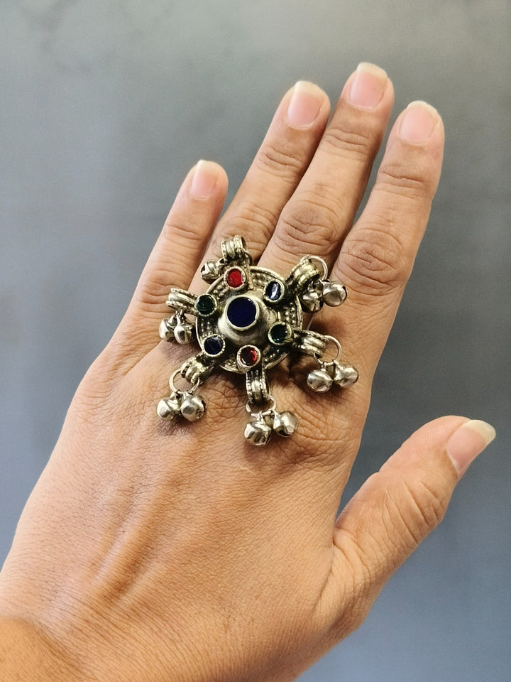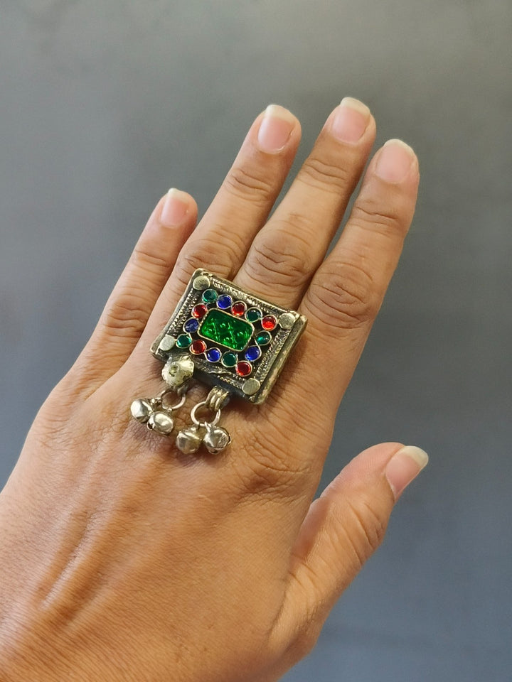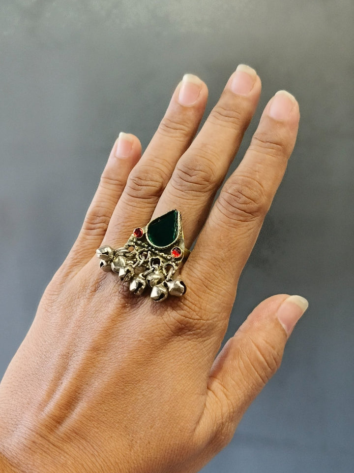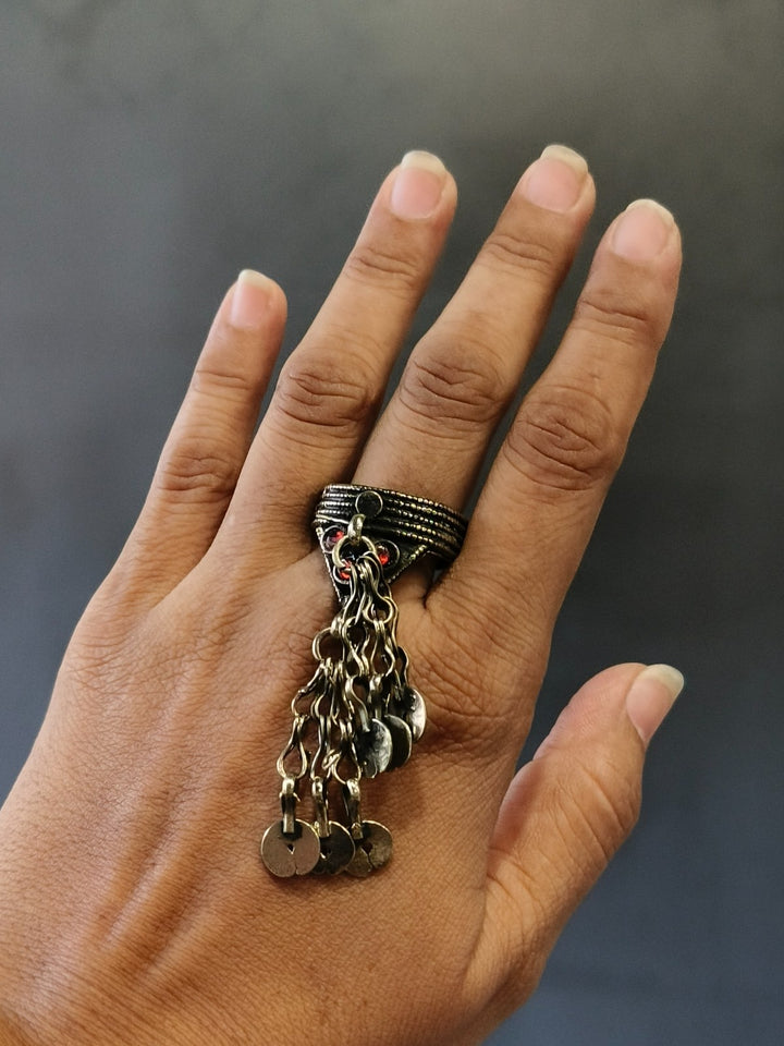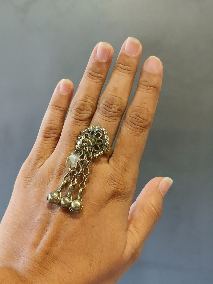 Afghani heritage jewellery is a vibrant expression of Afghanistan's rich cultural tapestry, characterized by handcrafted metalwork, semi-precious stones, coin embellishments, and colourful glass inlays. Drawing influences from Pashtun, Hazara, Turkman, and Kuchi tribal styles, these pieces are typically made from silver or mixed metals and often feature filigree patterns, chains, bells, and tassels. The jewellery is known for its ornate and statement-making aesthetic. Worn historically during weddings, festivals, and dances, Afghani jewellery is not only decorative but also a symbol of identity, status, and craftsmanship passed through generations.